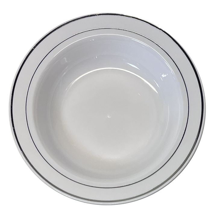 10.5" White Bowl with Silver Trim